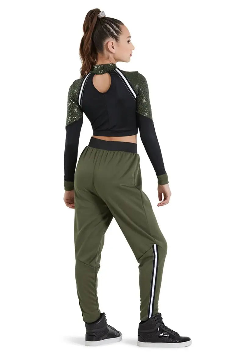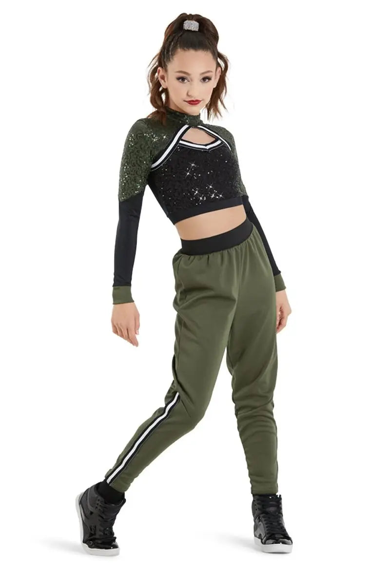 The stretch sleeves and back provides ease of movement for your dancers, while the elastic stripe trim adds that urban sporty touch.